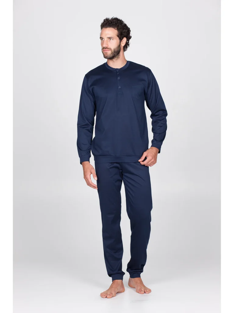 Designed for men who appreciate quality and elegance, this long Henley-style pajama set combines classic design with modern fabric technology. The result is nightwear that feels luxurious yet natural — comfortable yet sophisticated.