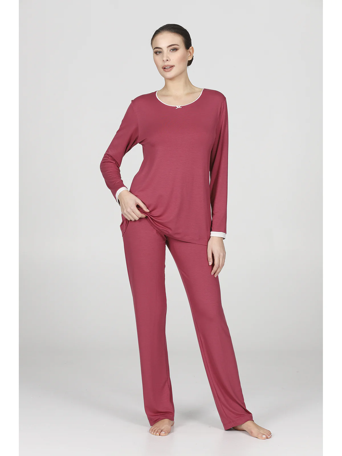 Exclusive Pajama In Stretch Modal - BORDEAUX - Image 4