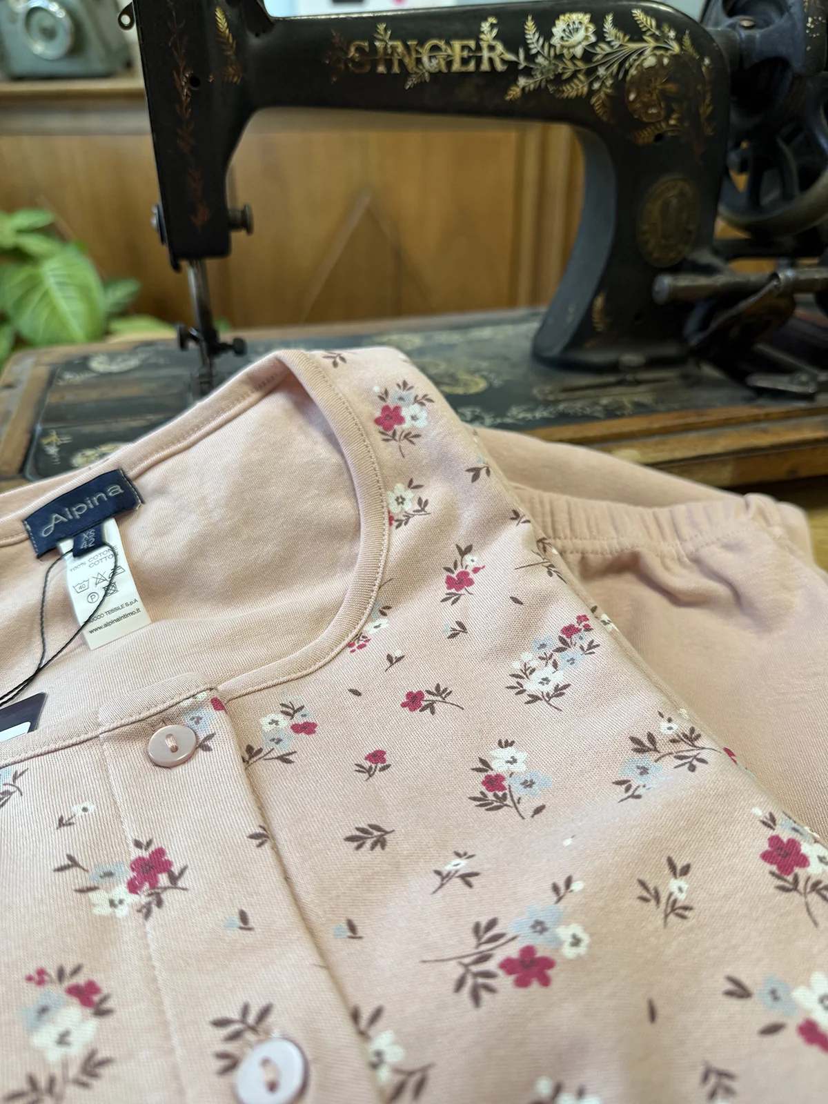 Women’s pajama in 30/1 interlock pure cotton: warm and comfortable, suitable for night and lounging at home. Cardigan model. Refined style in romantic floral print. Ideal for the most discerning individuals. Quality and tradition signed by Alpina.