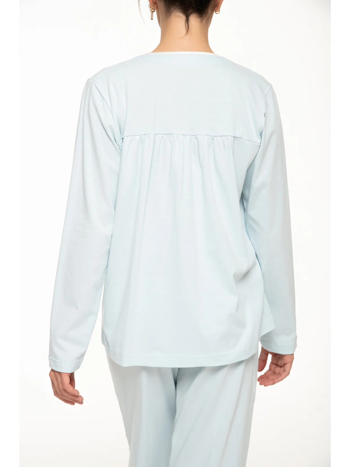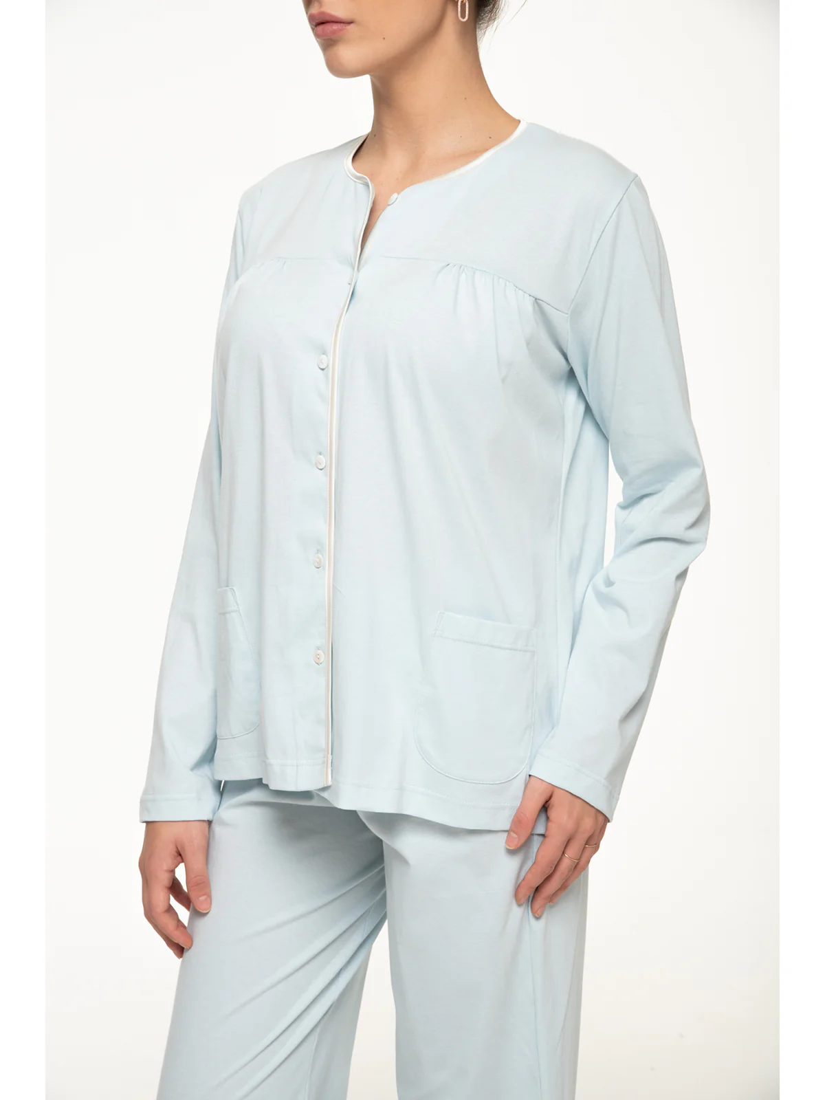 Long Cardigan Pajamas In Soft 100% Cotton Jersey - WATER