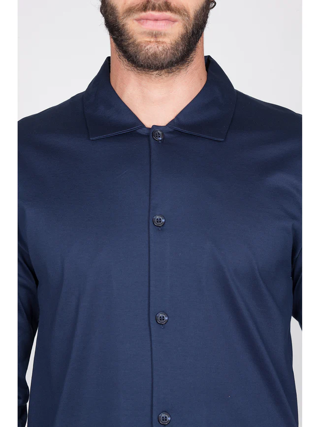 Men’s long pajamas in lustrous and silky 60/2 pure mercerized cotton jersey. Open cardigan with collar and pocket detail. A classic and refined nightwear piece in a solid color.