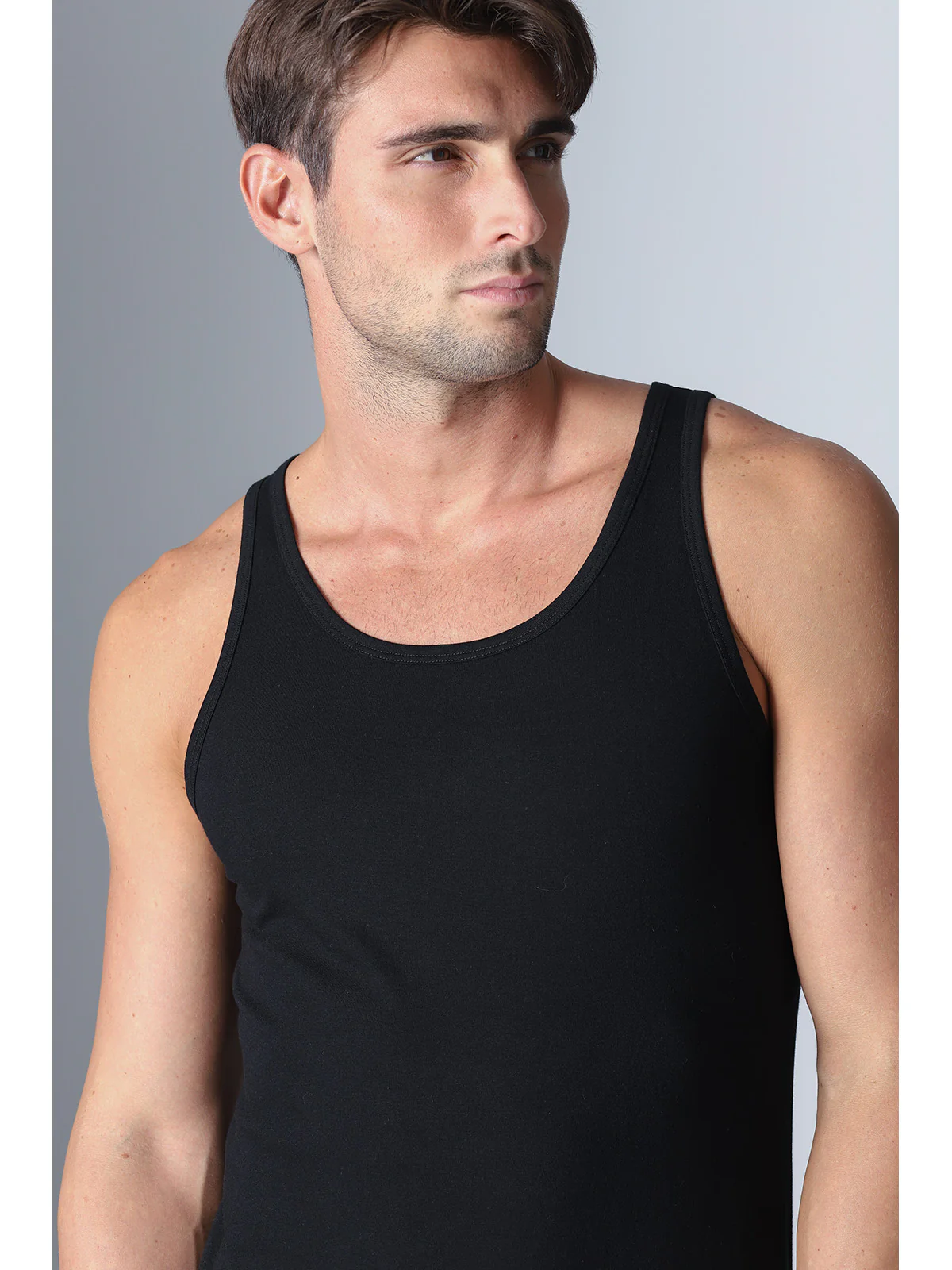 Racerback tank top in pure combed cotton jersey. During the spinning process, it is combed: the textile fibers that compose it are sorted after being carded, thus obtaining a cotton that is more durable, smoother, and shinier than standard cotton.