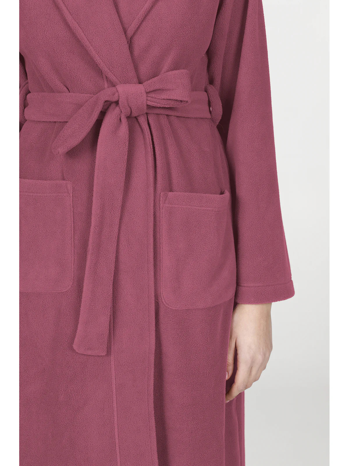 Shawl Dressing Gown In Warm Fleece - ANTIQUE PINK - Image 2