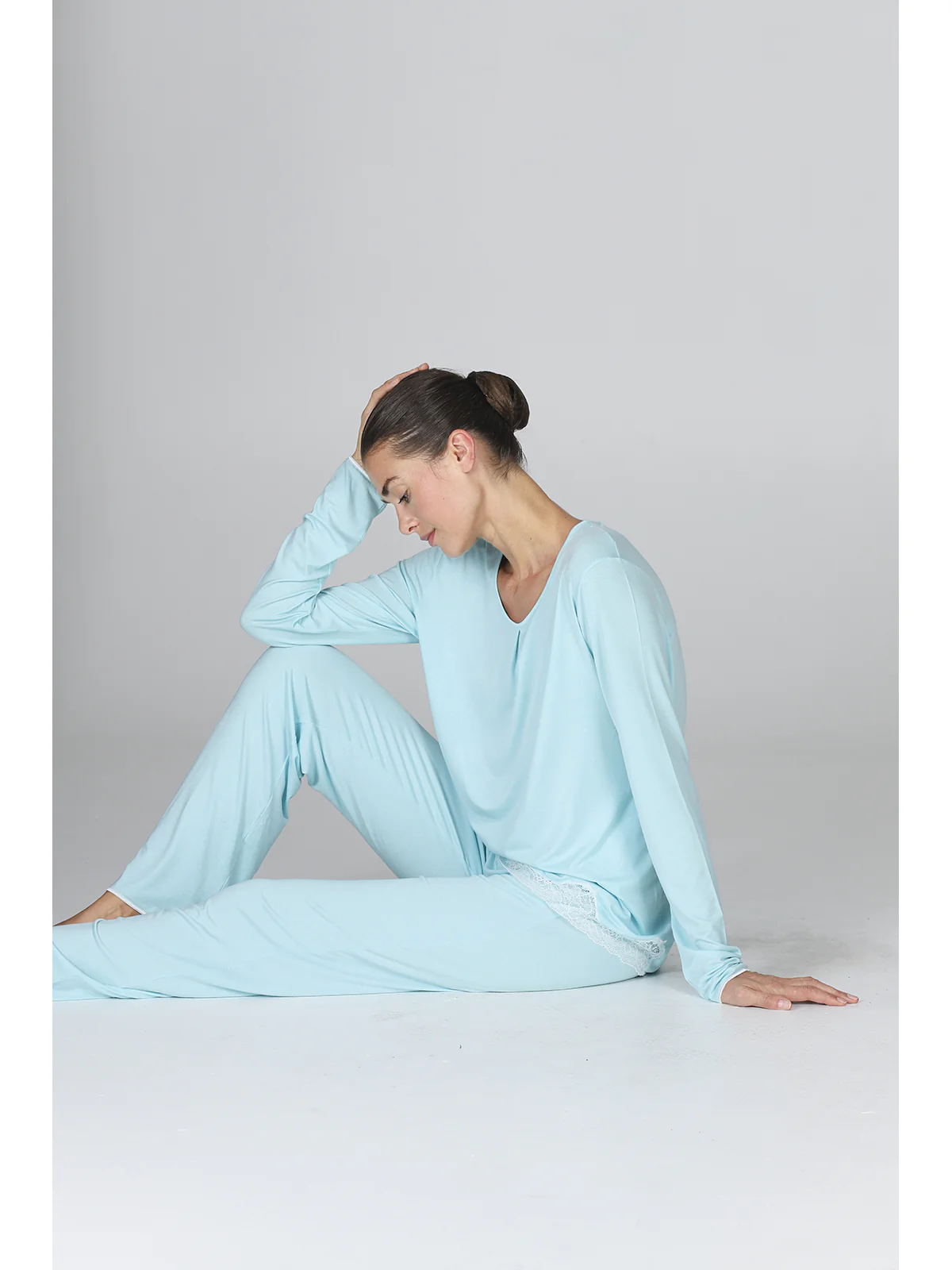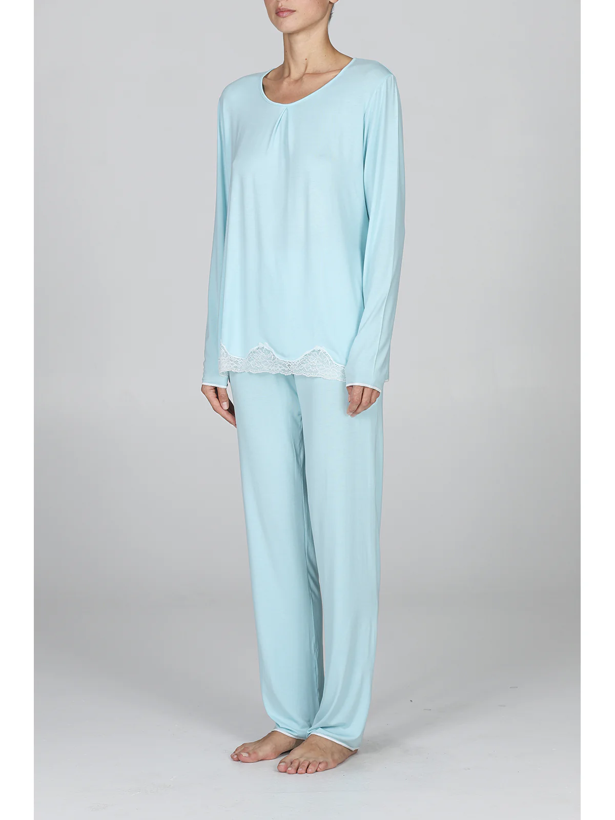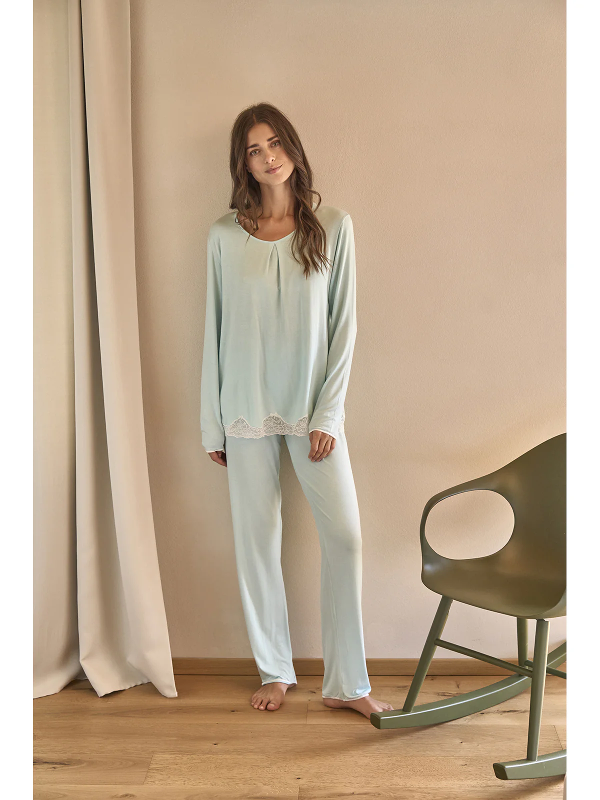 Soft Long Pajama For Women With Lace In Viscose – TURCHESE