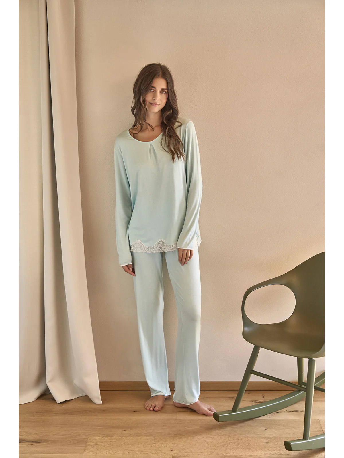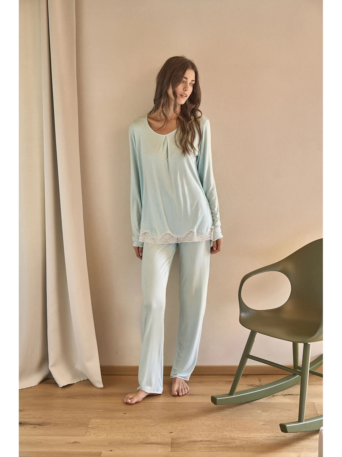 Soft Long Pajama For Women With Lace In Viscose - TURCHESE