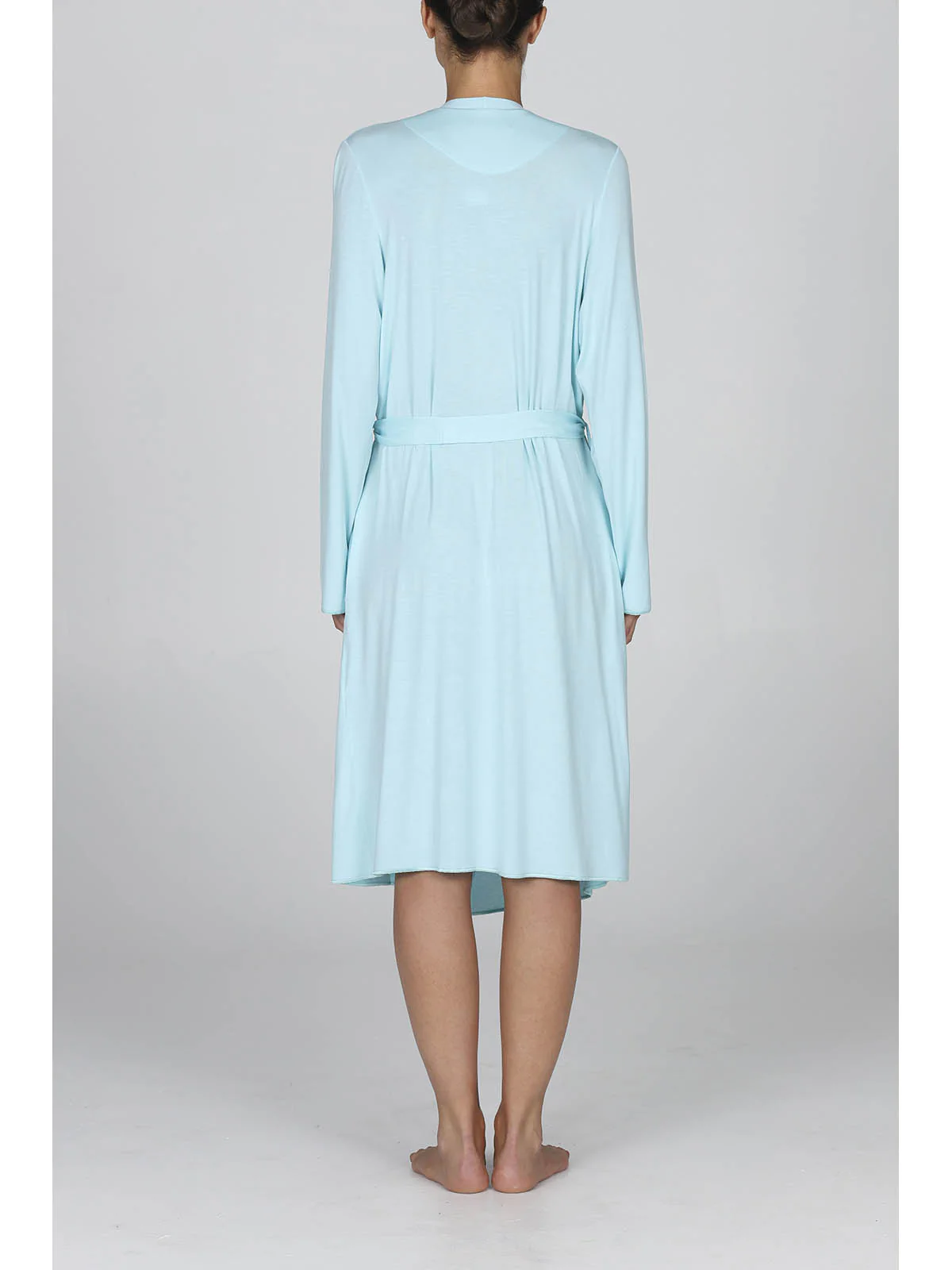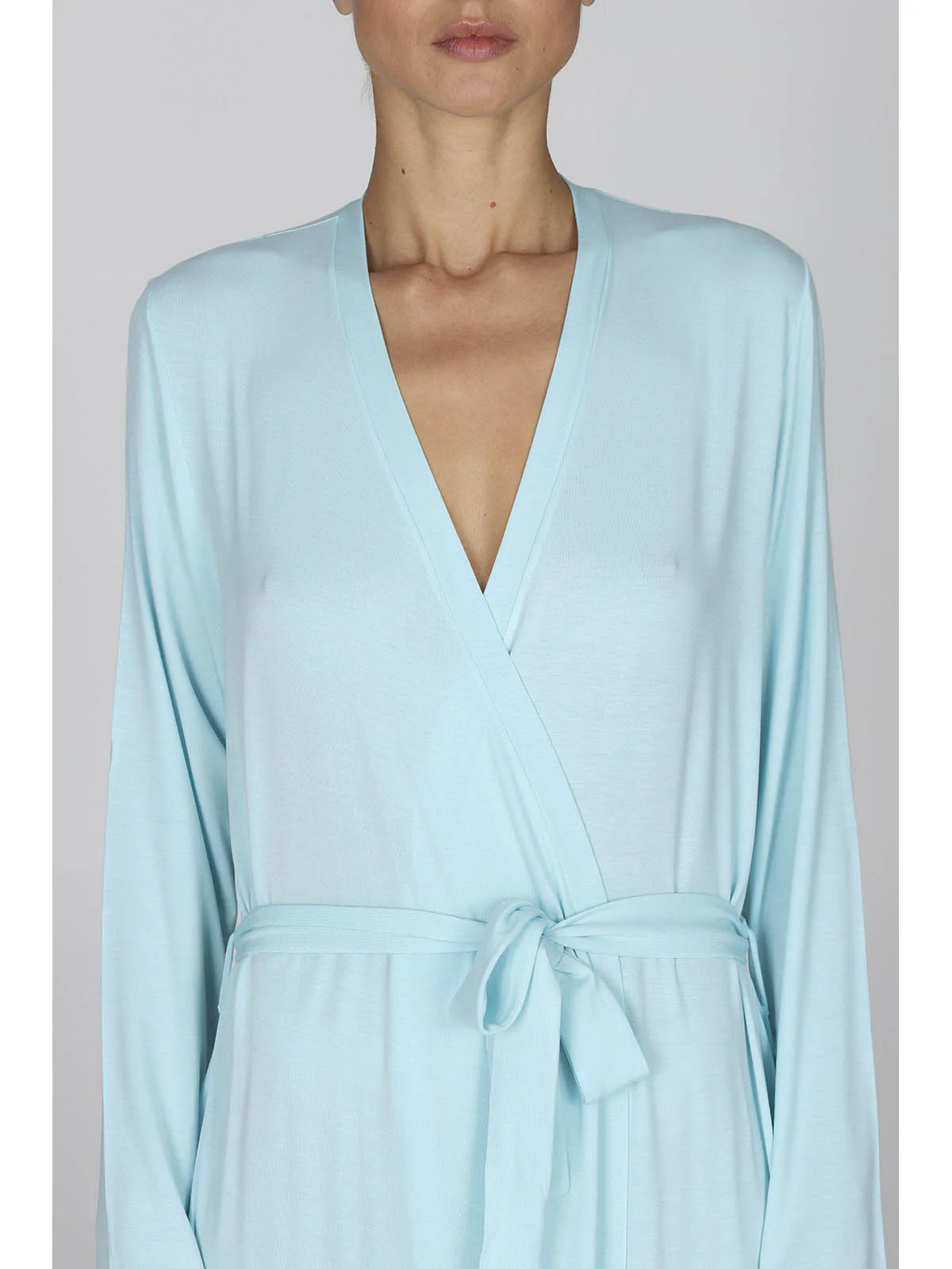 Women’s robe in soft 40/1 viscose jersey with belt loops and waist belt. Refined and always current in solid colors, ideal to wear over pajamas or lingerie. Modern comfort for a classic femininity signed by Alpina.
