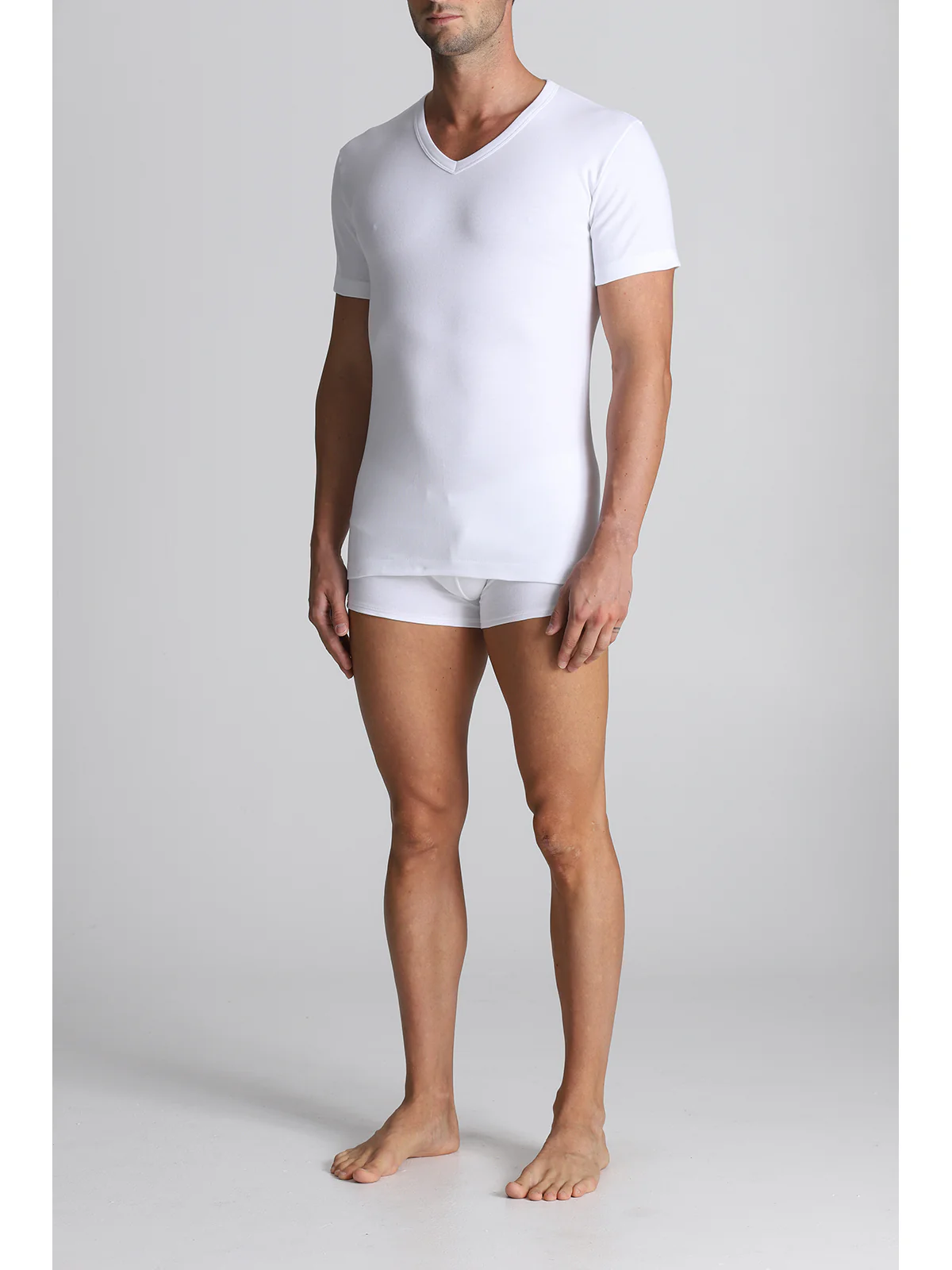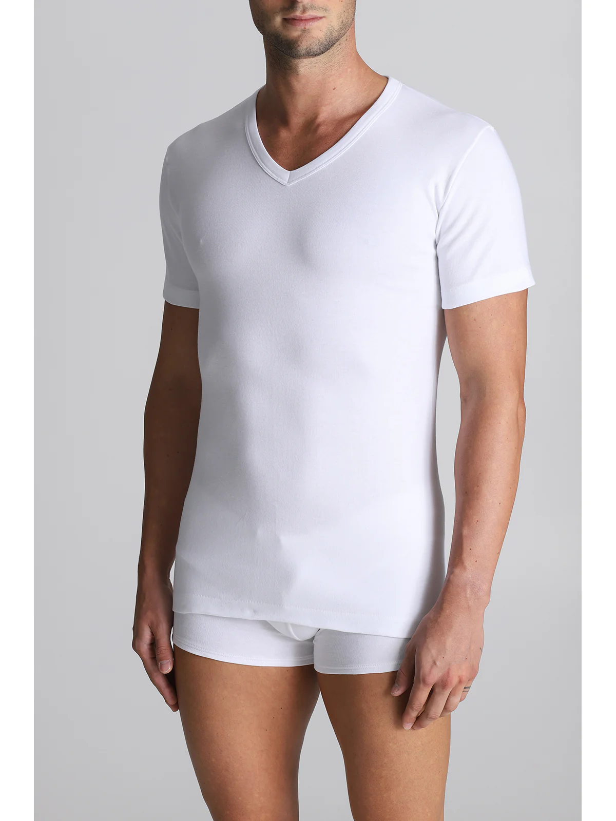HomeMen's UnderwiresMen's T-shirtsV-neck T-shirt In Fleece Cotton – White