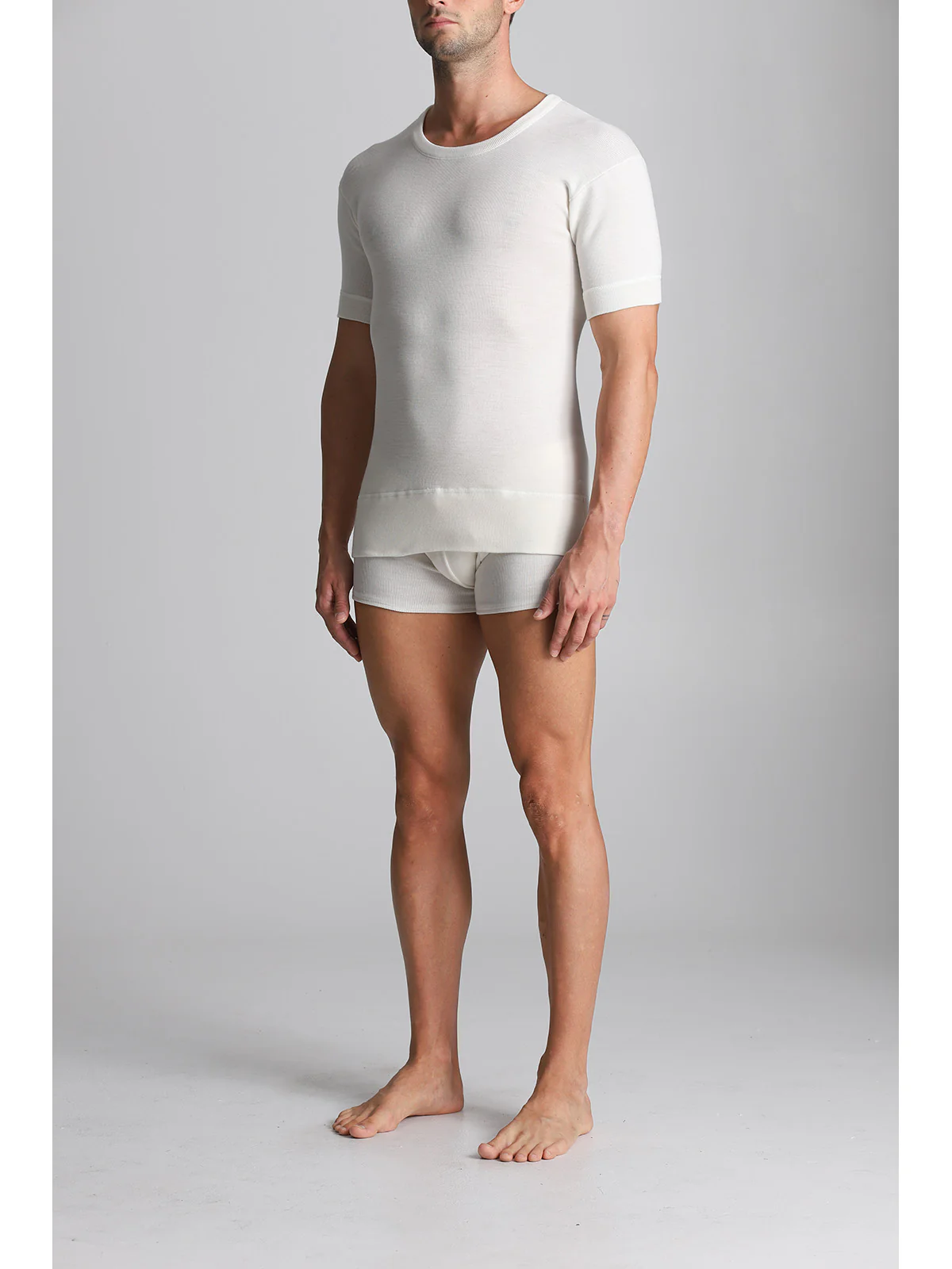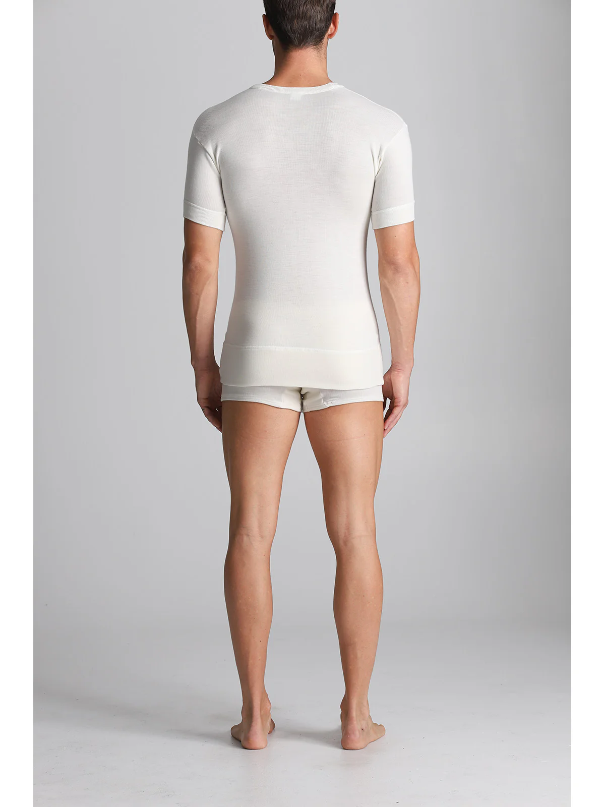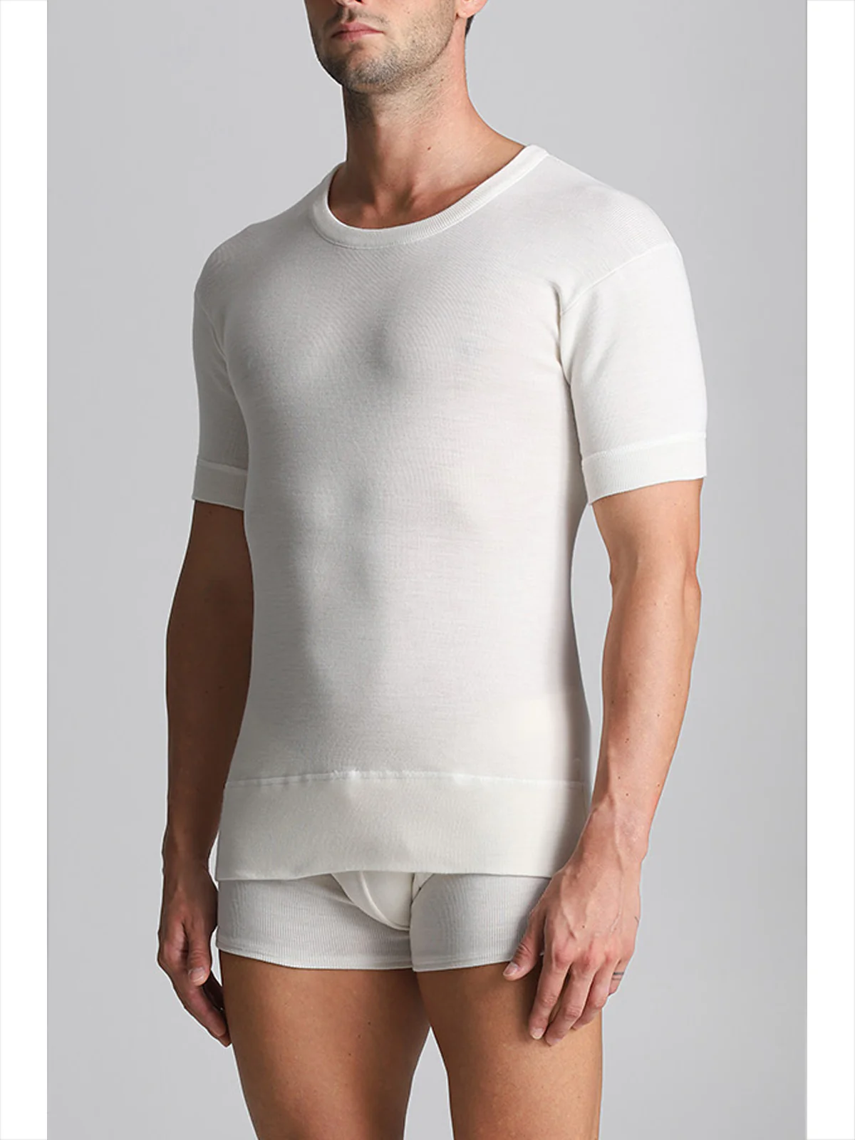 Men’s short-sleeved undershirt in 1×1 ribbed wool blend. Unparalleled warmth and practicality. Classic Alpina style.